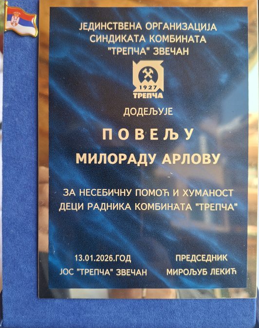 Kako se navodi, Kombinat „Trepča“ dodelio je Miloradu Arlovu plaketu za humanost.