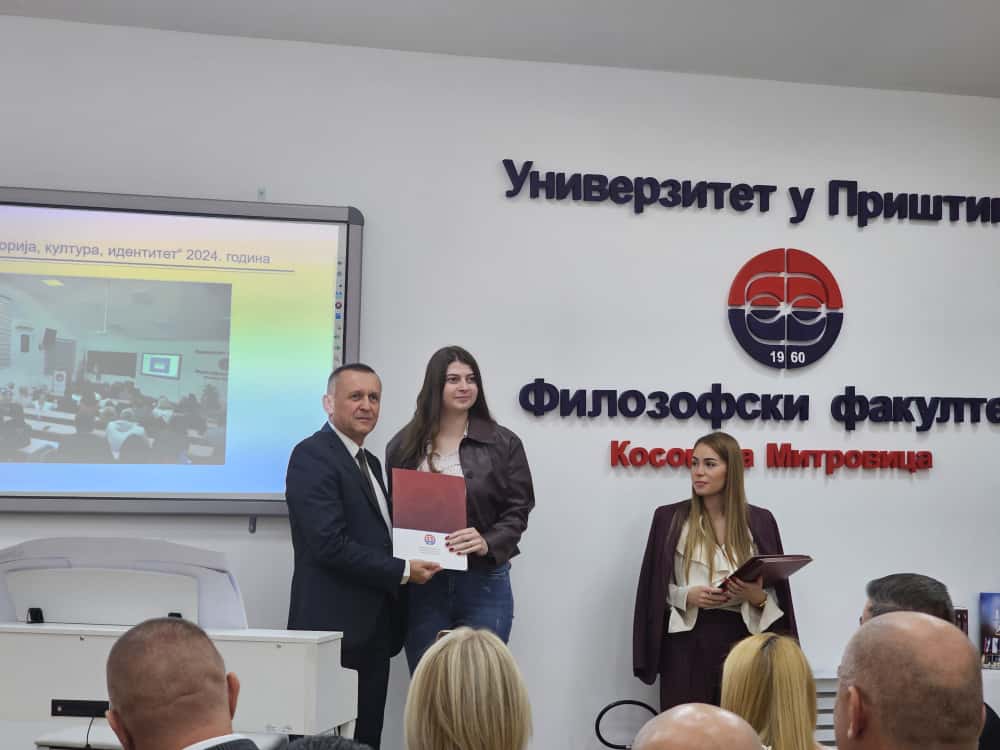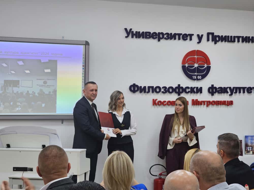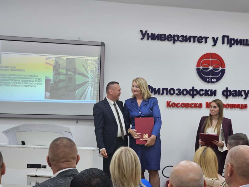 Povelja za dugogodišnji rad je uručena sekretaru Filozofskog fakulteta Milici Komnenović. Za svesrdnu podršku i pomoć, Kancelariji za Kosovo i Metohiju uručena je zahvalnica fakulteta, koju je primio Ivan Zaporožac.