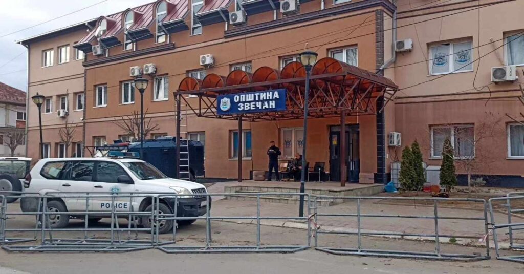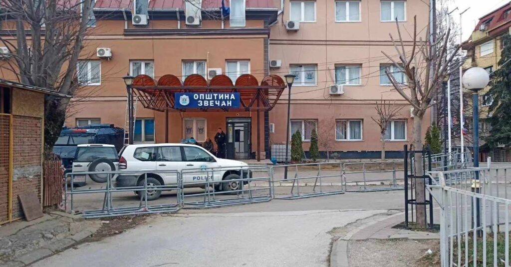 Ispred opštinskog objekta stacionirano je jedno oklopno vozilo specijalne jedinice Kosovske policije, kao i nekoliko vozila redovne policije.