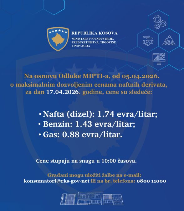 Maksimalne preporučene cene dizela i gasa na Kosovu danas su snižene za jedan cent u odnosu na juče, saopštilo je Ministarstvo industrije, preduzetništva, trgovine i inovacija.