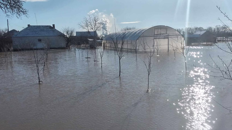 Dvorište Radeta Milića je potpuno poplavljeno, uništen mu je plastenik za povrće, štala, koševi, ambari. Visina vode je, kaže, pola metra i preti da uđe u kuću.