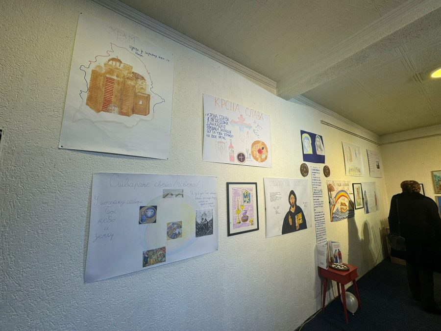 Postavka obuhvata radove inspirisane gradivom iz veronauke tokom sve četiri godine školovanja.
