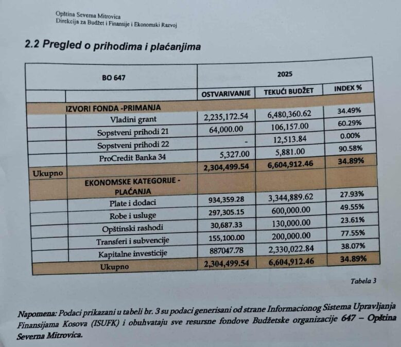 Finansijski izveštaj predstavila je direktorka finansijskog odeljenja, Mevljude Peci Šalja, ističući da je opština u periodu januar–septembar zabeležila rast sopstvenih prihoda, naročito od poreza na opštinsku imovinu i pružanje usluga. Izveštaj o učinku predstavila je službenica, istakavši da je opština ostvarila napredak u pružanju javnih usluga.