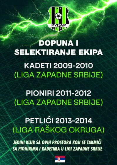 „Ako voliš fudbal, želiš da napreduješ i takmičiš se na visokom nivou – pridruži nam se“, poručuju iz FK Rudar, ističući da su jedini klub iz ovog kraja sa dve selekcije u Ligi Zapadne Srbije.