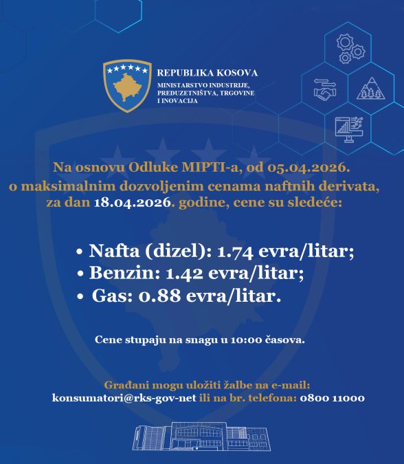 Maksimalna preporučena cena benzina na Kosovu je snižena za jedan cent u odnosu na juče, saopštilo je Ministarstvo industrije, preduzetništva, trgovine i inovacija.
