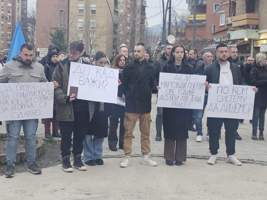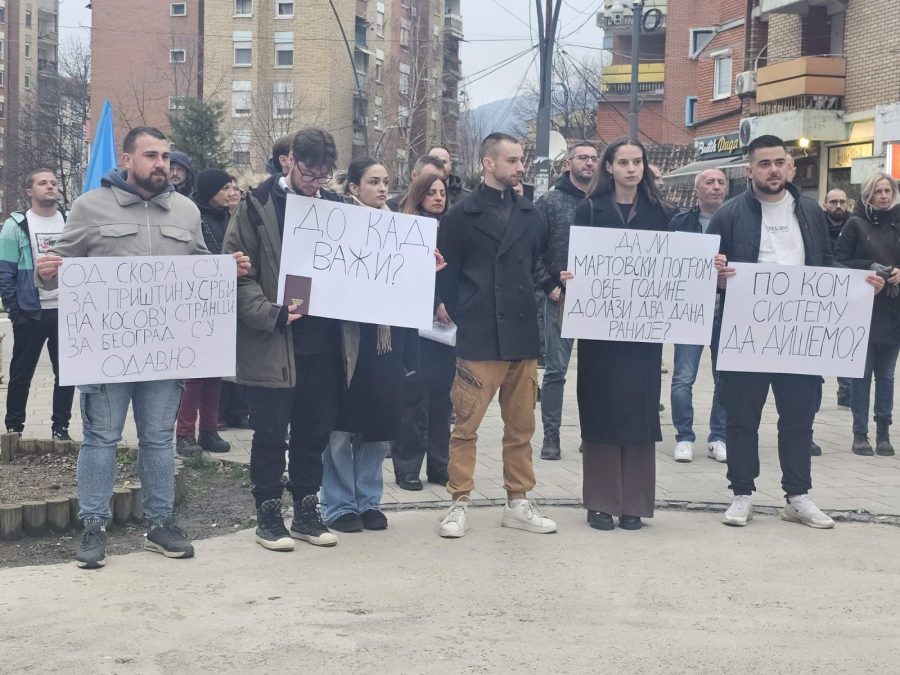 Okupljeni su nosili transparente sa porukama: „Od skora su za Prištinu Srbi na Kosovu stranci, za Beograd su odavno“, „Do kada važi (Indeks)“, „Da li martovski pogrom ove godine dolazi dva dana ranije“, „Po kom sistemu da dišemo“