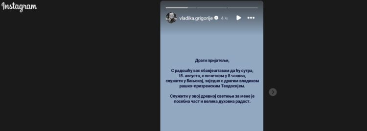 Liturgiju u manastiru Banjska, od 8 časova zajedno sa episkopom raško-prizrenskim Teodosijem, služiće episkop Dizeldorfa i Nemačke, vladika Grigorije.